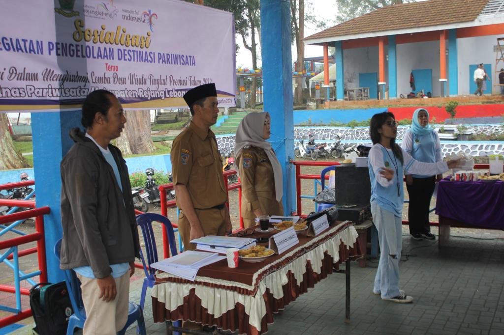 Sosialisasi ini dihadiri oleh perserta berjumlah 50 orang yang terdiri dari Kelompok Sadar Wisata, BUMDES/PEMDES, dan ASN Dinas Pariwisata Kabupaten Rejang Lebong. Para peserta akan mendapatkan wawasan berharga mengenai strategi pengelolaan destinasi pariwisata yang efektif untuk mempersiapkan diri menghadapi persaingan dalam Lomba Desa Wisata Tingkat Provinsi.